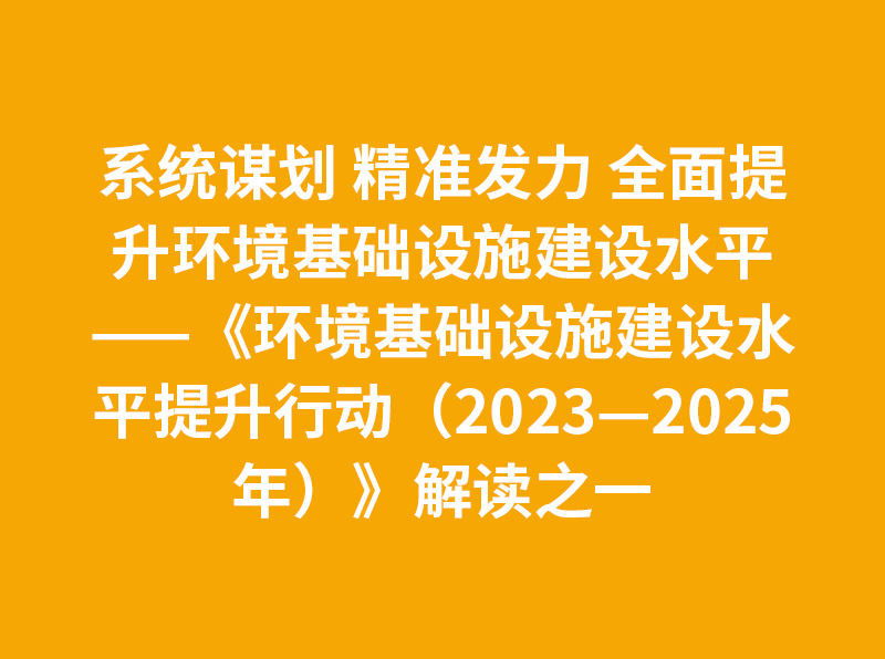 系统谋划 精准发力 全面提升环境基础设施建设水平 ——《环境基础设施建设水平提升行动(2023—2025年)》解读之一