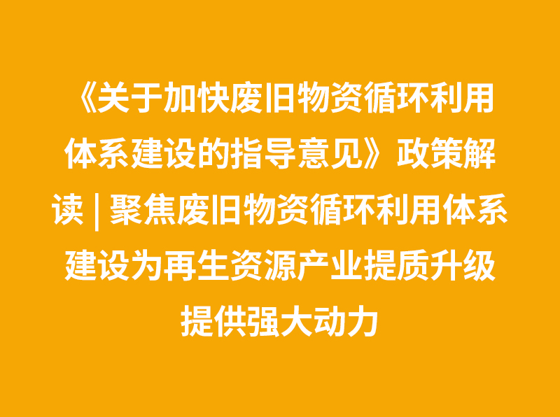《关于加快废旧物资循环利用体系建设的指导意见》政策解读 | 聚焦废旧物资循环利用体系建设为再生资源产业提质升级提供强大动力