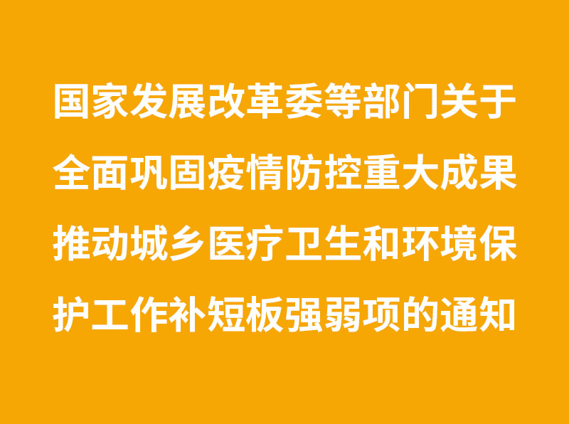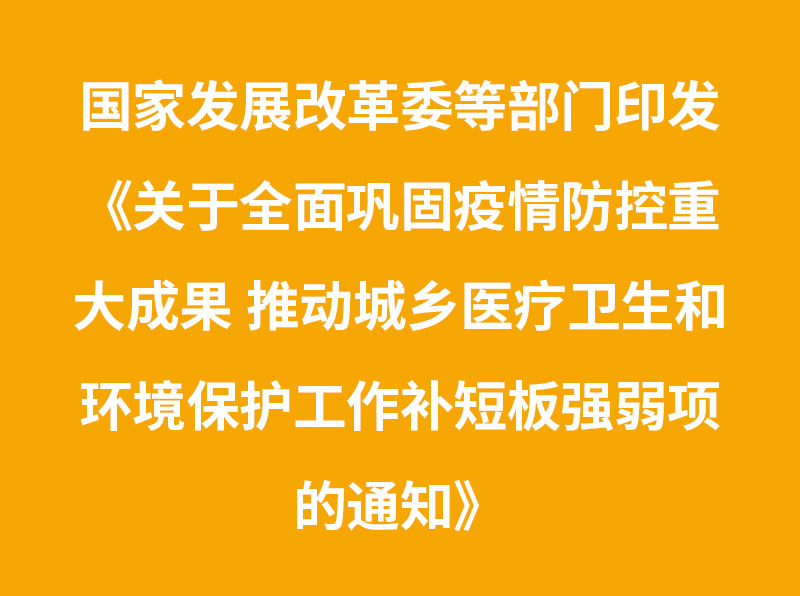 国家发展改革委等部门印发《关于全面巩固疫情防控重大成果 推动城乡医疗卫生和环境保护工作补短板强弱项的通知》