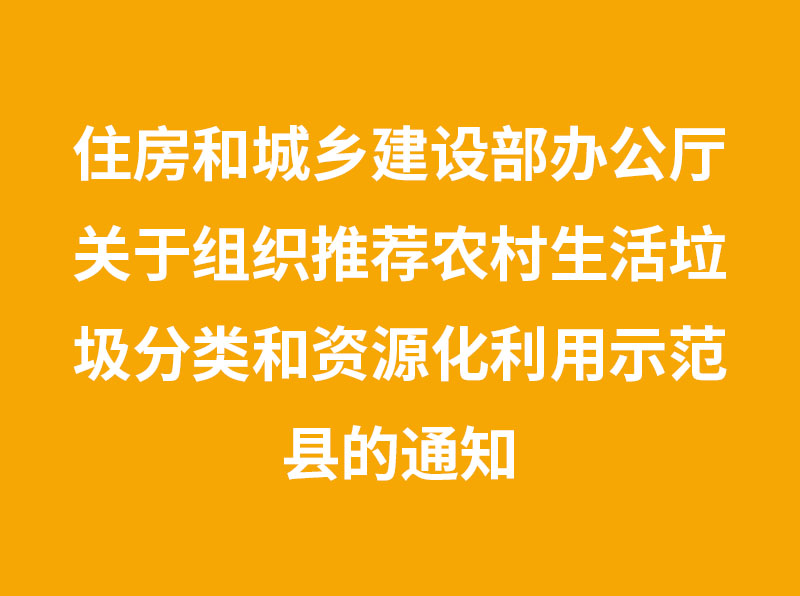 住房和城乡建设部办公厅关于组织推荐 农村生活垃圾分类和资源化利用示范县的通知